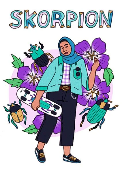 The original pieces, completed with watercolour, acrylic inks & colour pencils, were part of a series I exhibited for my March 2018 group show "Urban Tails," exhibited at Swing a Cat Gallery, To Kwa Wan. In it, we explored the theme of animals in the city, and blending wildlife with urban life. I wanted to represent the relationship between hip, modern girls, and their pet companions.